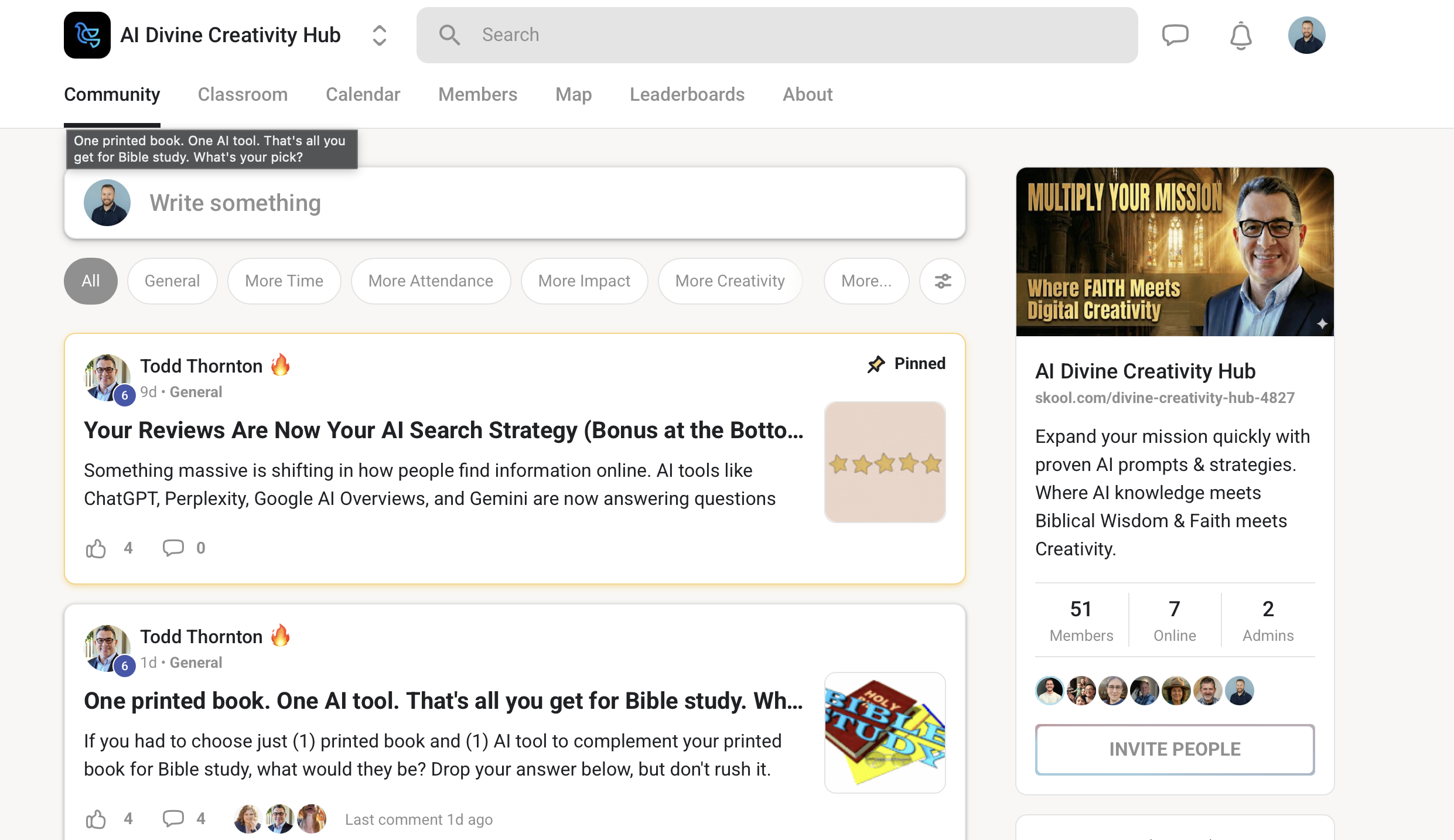 AI for Ministry Creativity Hub is a spirituality community on Skool with 4 verified member reviews and a 4.8/5 rating.