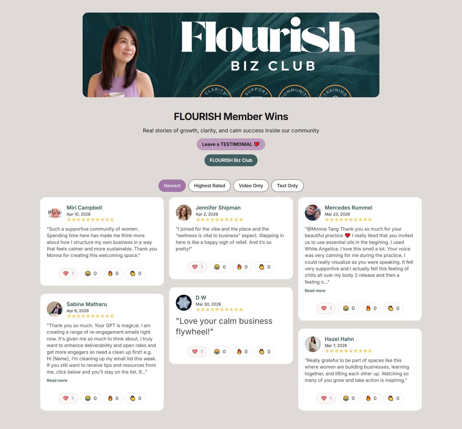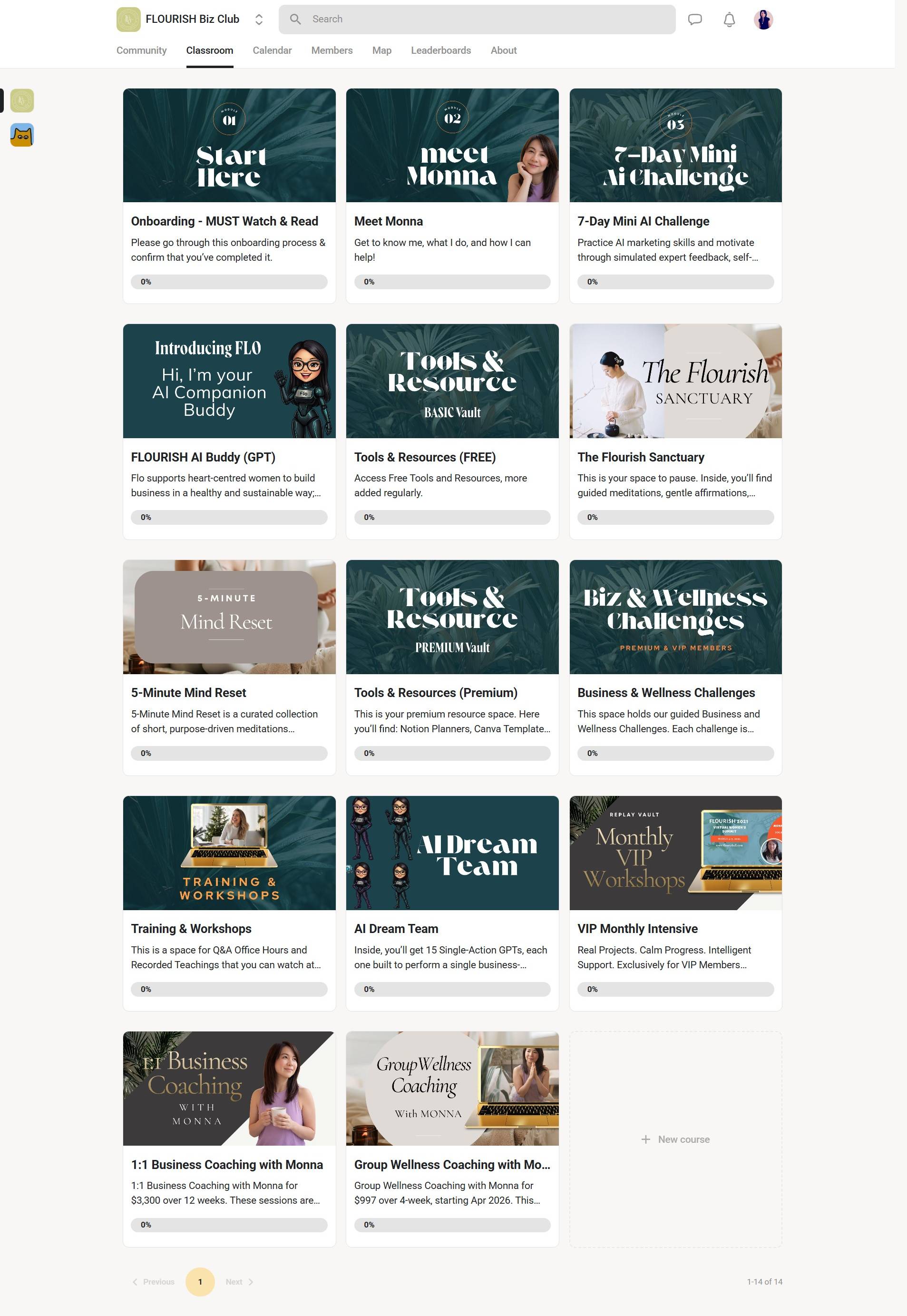FLOURISH Biz Club is a free community on Skool for 𝗛𝗲𝗮𝗿𝘁-𝗰𝗲𝗻𝘁𝗲𝗿𝗲𝗱 𝗪𝗼𝗺𝗲𝗻, coaches, and holistic practitioners who want to grow a st.... Monna Tang runs the community, which centers on free community membership on Skool platform and ritual-to-System Method (Work • Wellness • Soul).