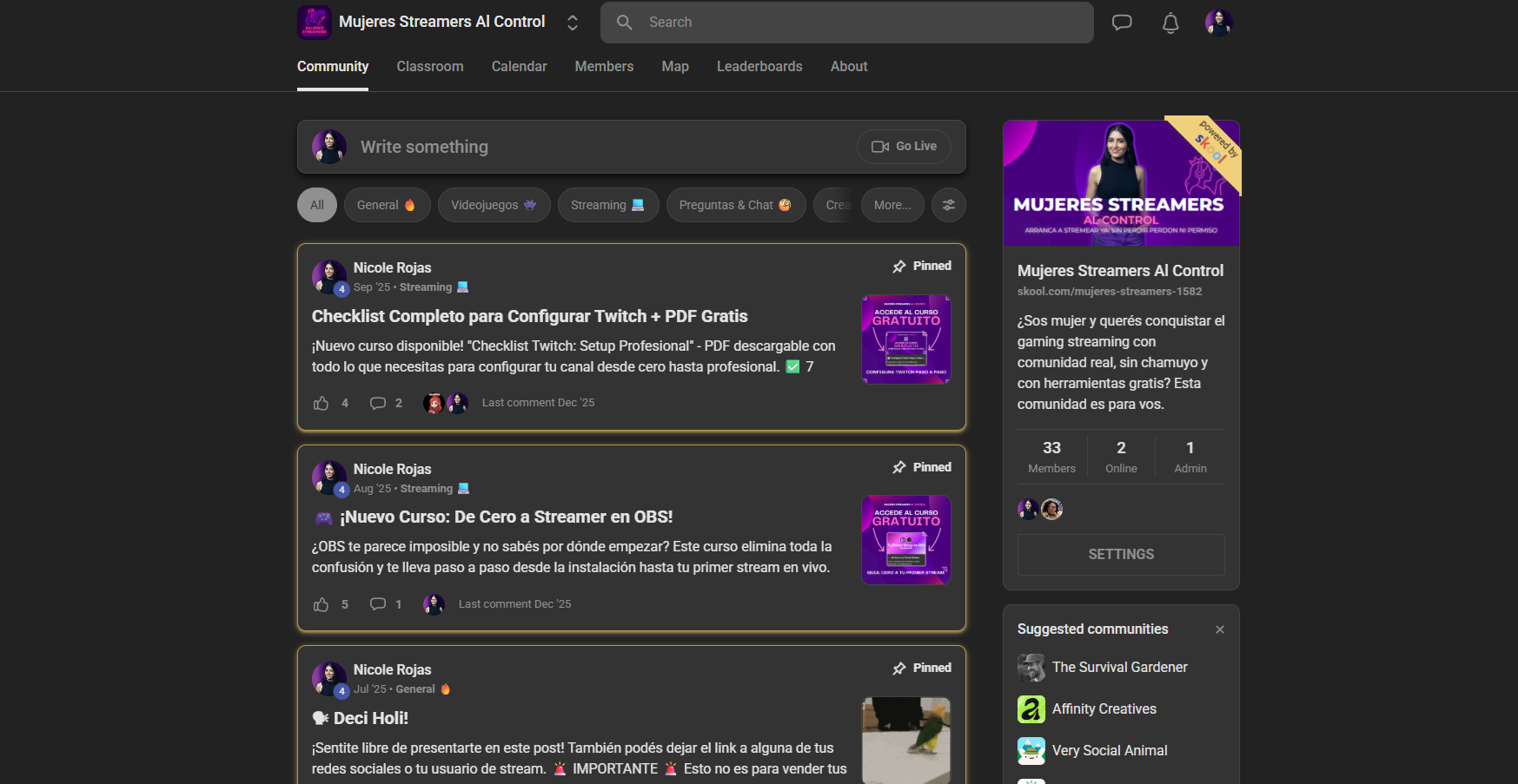 Mujeres Streamers Al Control is a gaming community on Skool with 0 verified member reviews and a pending rating.