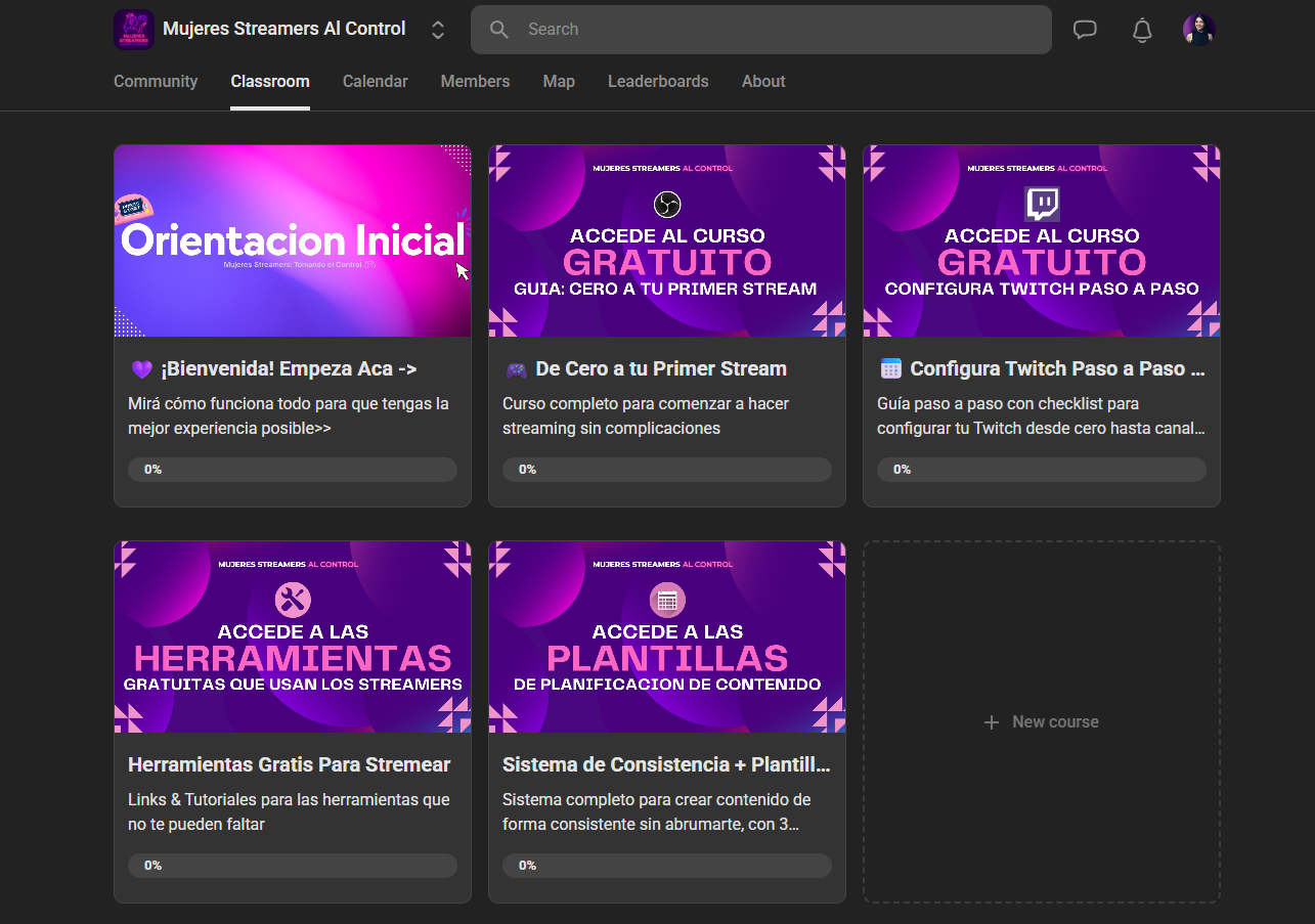 This free community helps women get started with streaming across gaming, music, art, and other categories. You'll find step-by-step OBS tutorials, downloadable resources like overlays and checklists, and guides to free streaming tools. It doesn't have member reviews yet, but it's focused on building confidence and skills without requiring upfront costs.