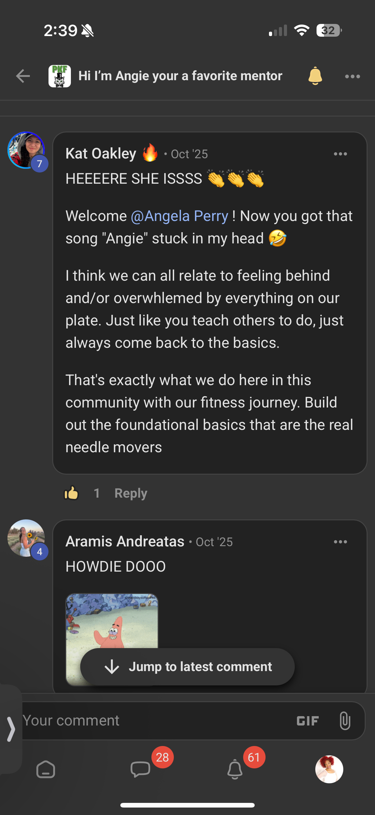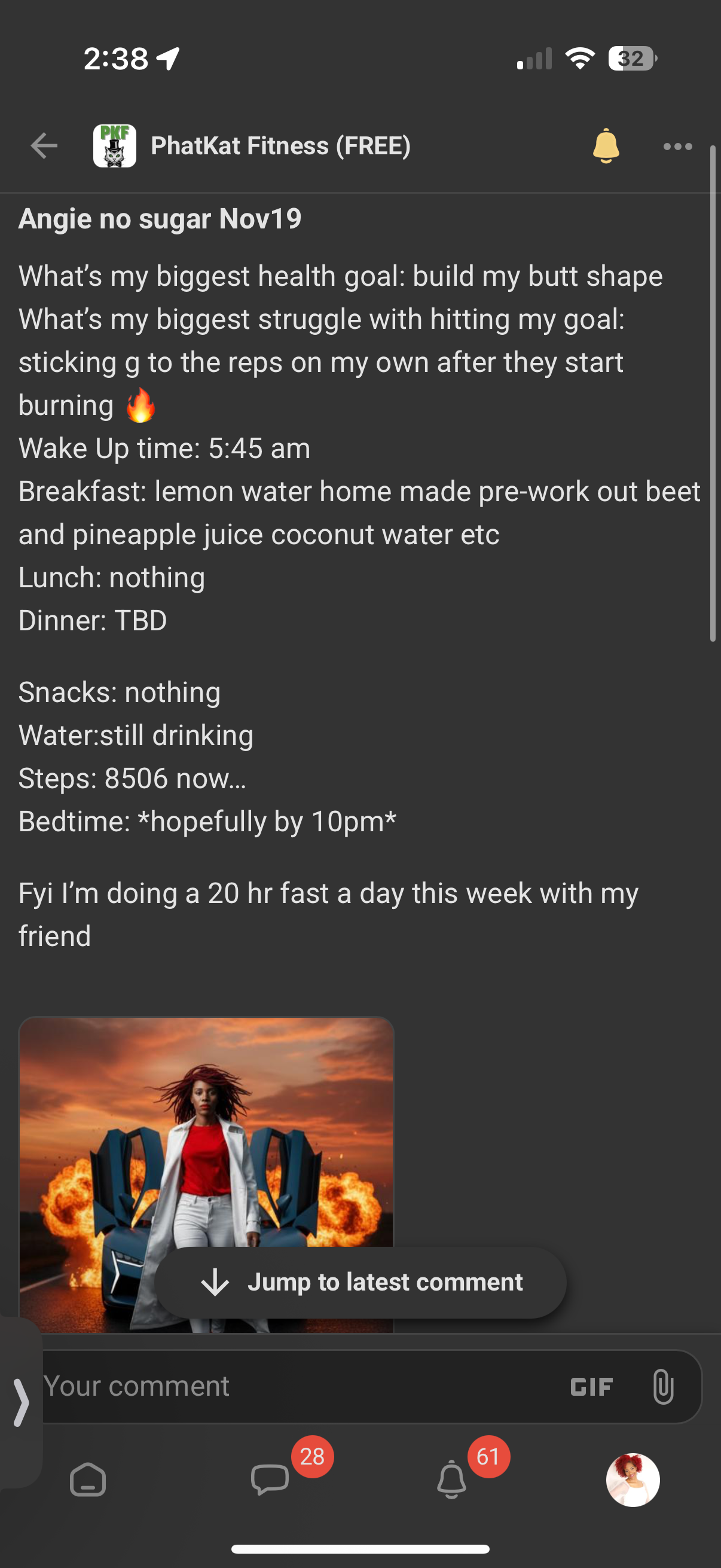 Kat is awesome! Her community is very inviting and there's lots of engagement. She is very inspirational and will get you moving.... in a tough, but loving way.😉