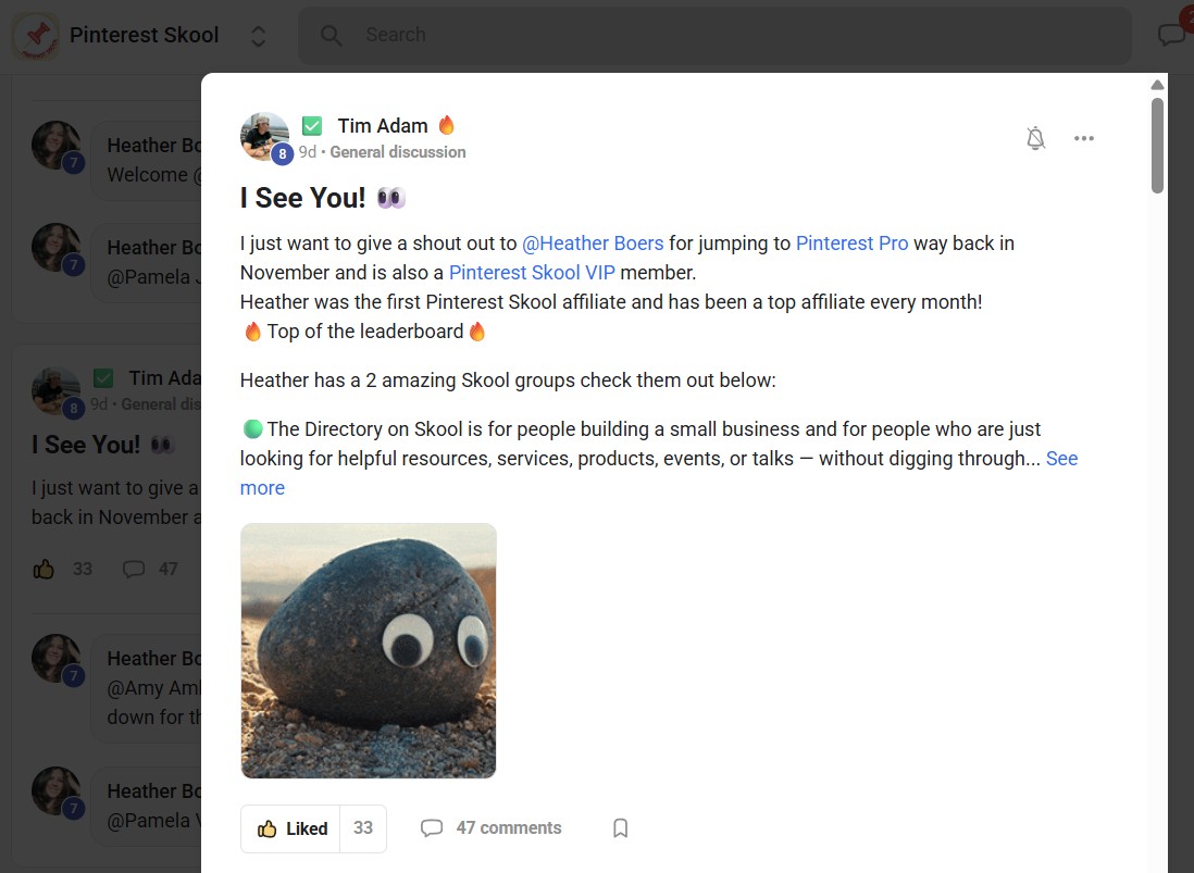 What really sets Pinterest Skool apart is the support. The weekly live calls with Tim, the clarity of the training, and the community make it easy to actually apply what you’re learning instead of staying overwhelmed.