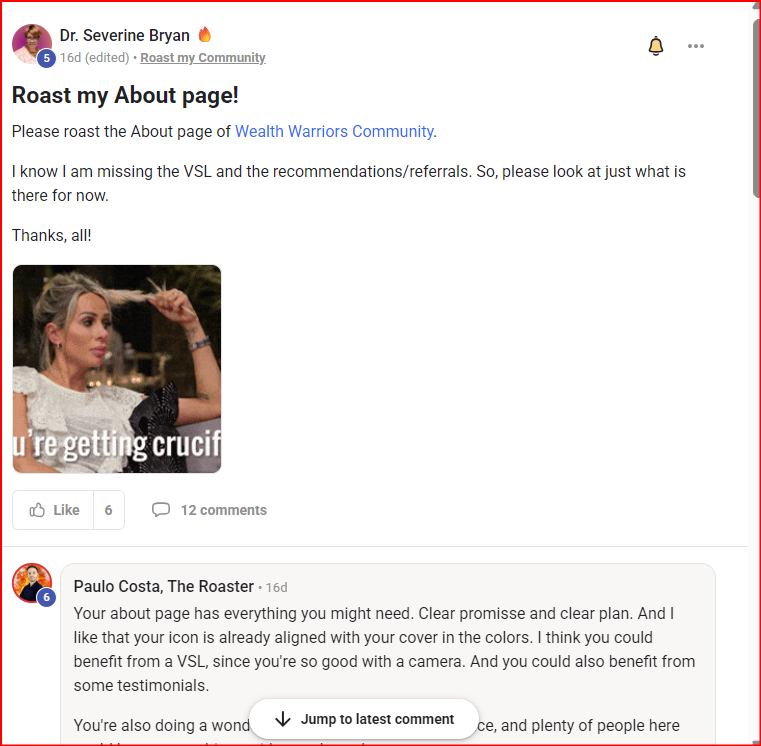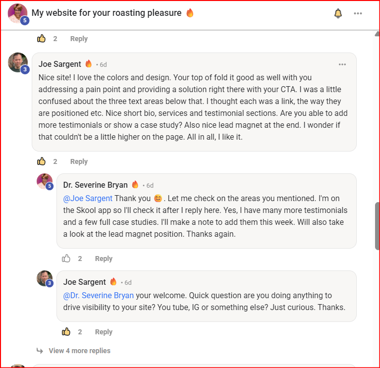 I joined Paulo’s community and shared my website and Skool community for a roast. What I received was honest, constructive feedback and practical suggestions I could apply immediately. Several members took the time to point out areas that could be clearer or stronger, and many of those improvements are already implemented.