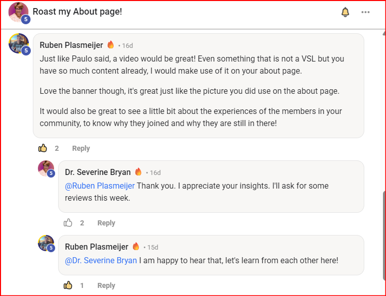 What I appreciate most is that the feedback isn’t just criticism—it’s actionable. Paulo has created a space where people genuinely help each other improve their messaging, websites, and offers. If you’re willing to hear the truth and refine your work, this community can be incredibly valuable.