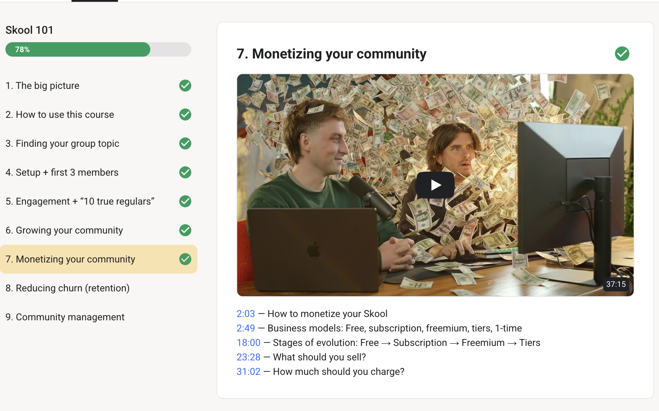 Great community of Skoolers who openly share & discuss what works, doesn't work, new features on Skool, connect with like minded people!
