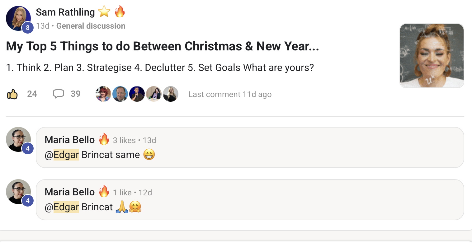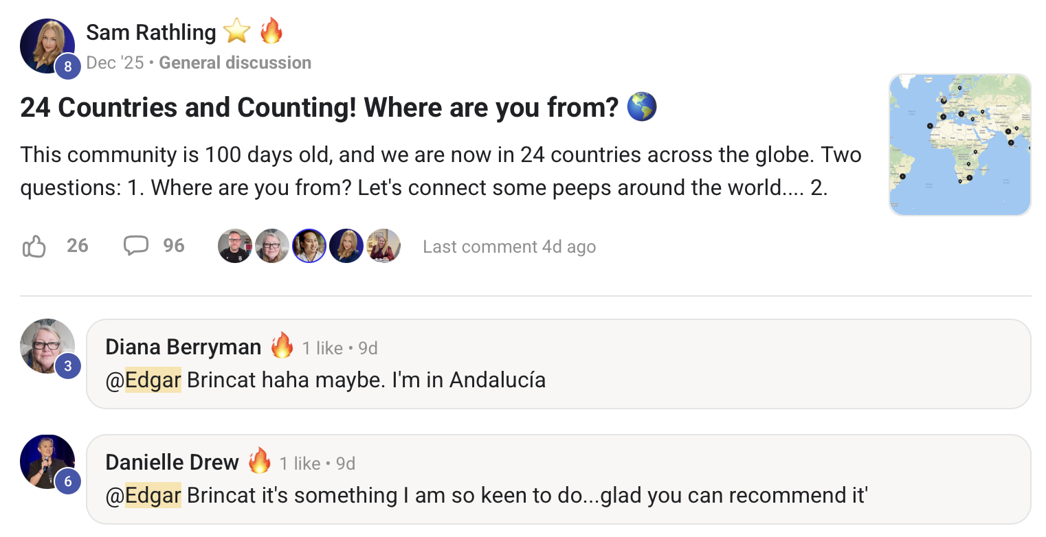 Fun, welcoming, interactive, engaged, active, and quality-focused (we only let 1 in 10 people in unless referred). We are a Top 1% Skool with the star ⭐️ so it's busy and a vibe for business owners, entrepreneurs. Social and lively, light-hearted.
