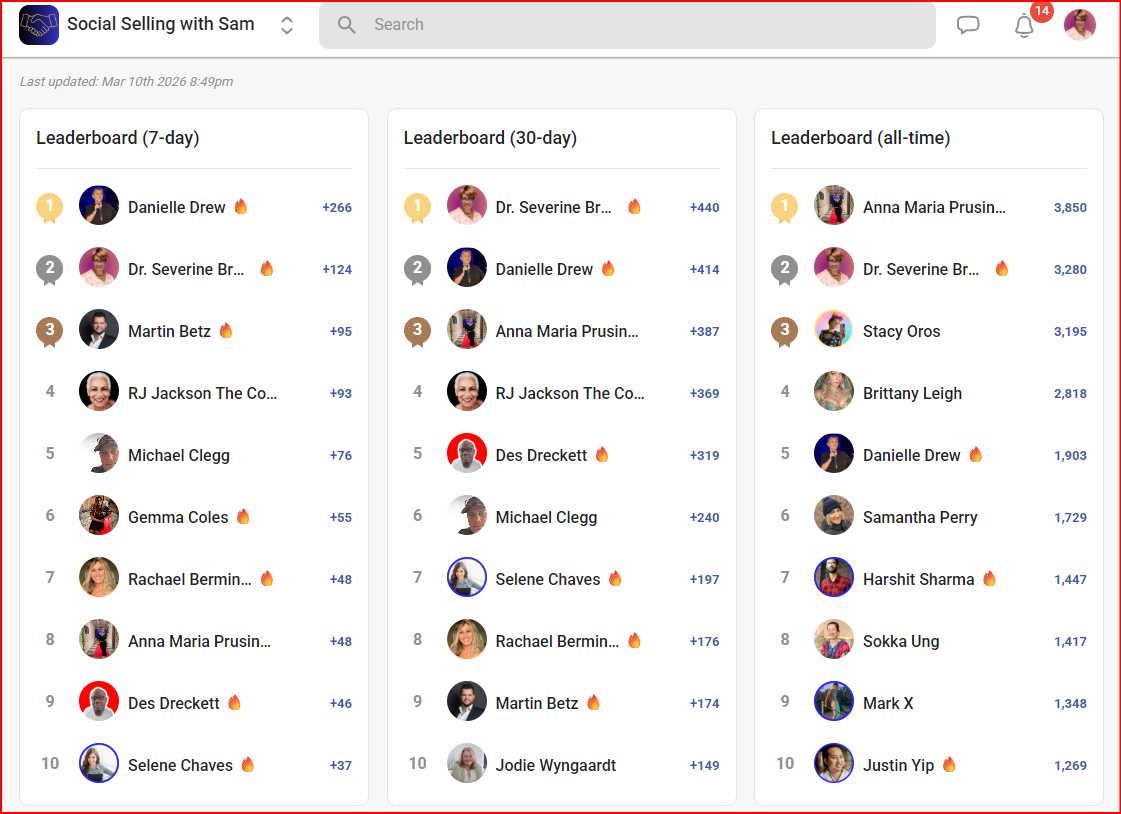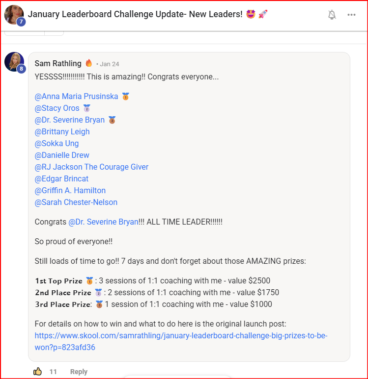 Social Selling with Sam is a relationships community on Skool with 11 verified member reviews and a 5.0/5 rating.