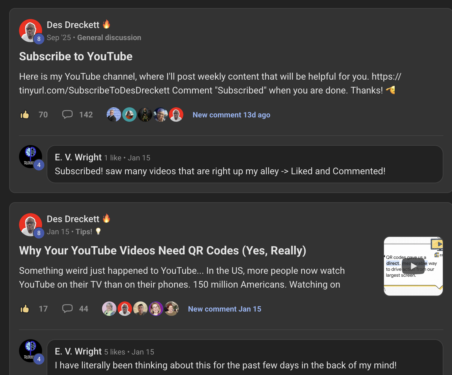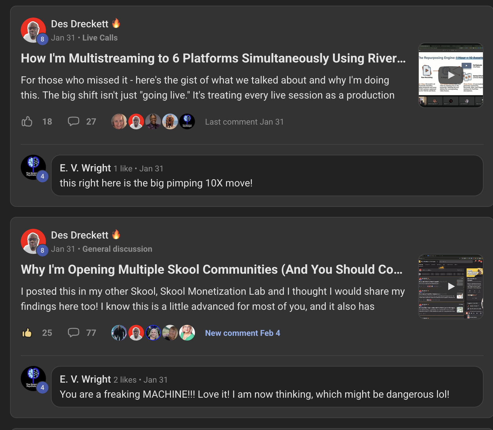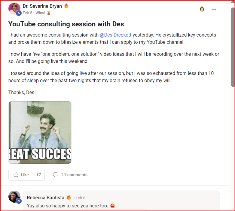 Des is one of the most straightforward people I have worked with in quite some time. He gives a clear path, nothing held back and his feedback is loaded with gold start nuggets. I think it's just his nature and the fact that he has broken through building a Skool group from scratch as well as demonstrating how you can do it too. Aside from Des providing a ton of valuable content, maybe the best part of The Content Revenue Lab lies in it's members. A lot of fun, great participation and everyone I have interacted with multiplies the sense of helping.