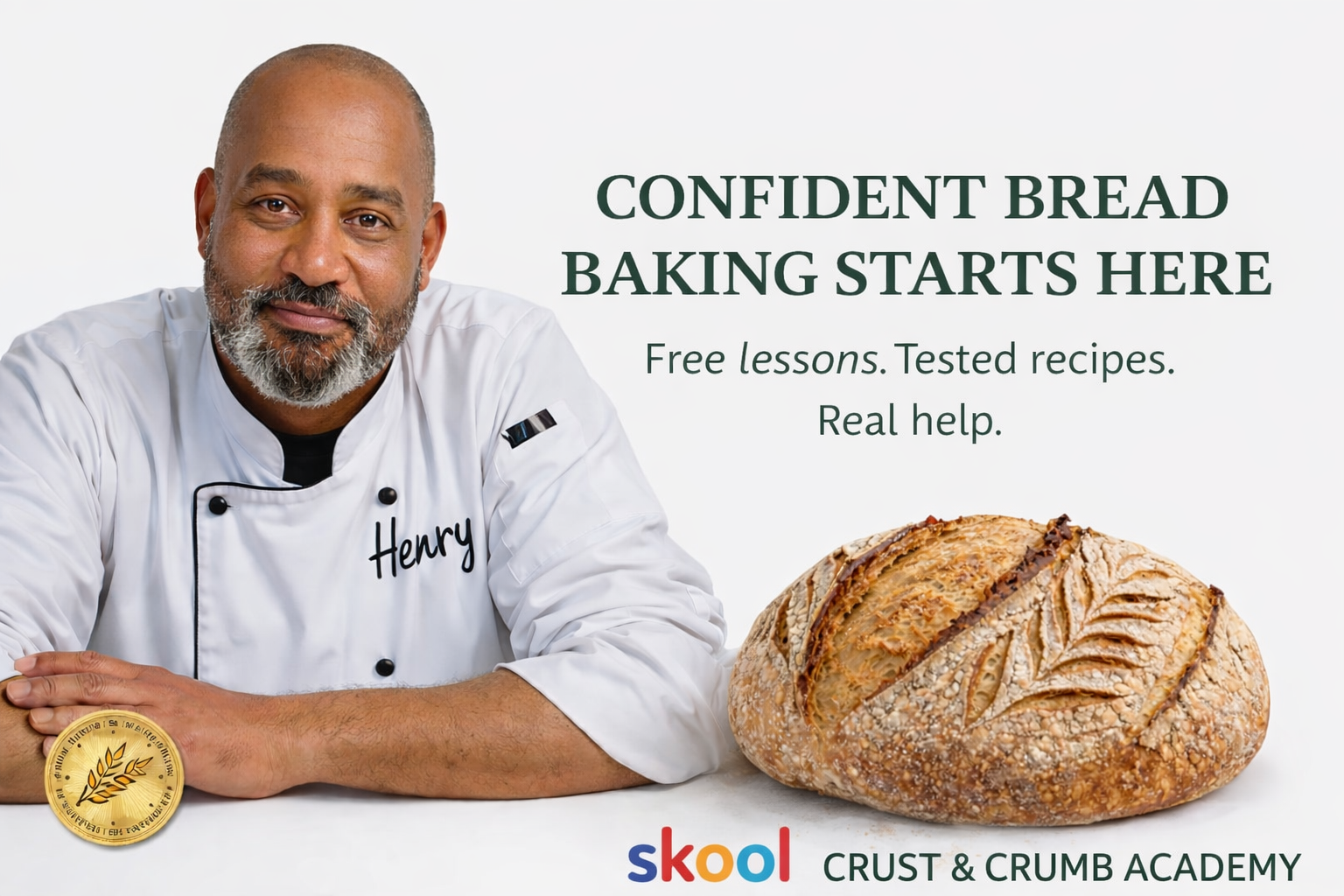 Learn sourdough and yeasted bread through structured courses, tested recipes, and direct feedback from Henry Hunter, a working baker with 26 years of marketing experience, author of "Sourdough for the Rest of Us" and "From Oven to Market," and founder of the 50,000+ member Facebook group Baking Great Bread at Home.