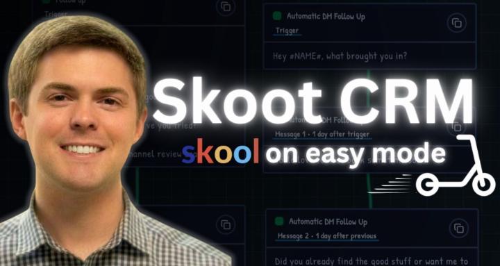 Make Your Skool Easier To Run, While Increasing Your Monthly Revenue. Skoot CRM is trusted by 22 Skool Games winners and 411 communities making in total over $2,037,212 a month. Troy McNeely was able to close $15k in New Revenue with No Sales Calls! Tran Man Duc saved over TWO full weeks of working hours every month! Top Skoolers say: - Calvin Hollywood ๐โญ๐ฅ: โYou can save a lot of time & make more moneyโย - Matt Ryder ๐: The failed payment DM automation was essential to his #1 Skool Games finish. With Skoot CRM, you get: - Automatic DMs that onboard and retain members. - Slash commands to respond instantly without the busywork. - Failed payment and churn sequences that recover lost MRR. - Member tagging to track engagement and buying intent. - Post scheduling to stay consistent. - Keyword tracking to catch revenue opportunities. & much moreโฆ Includes a 1:1 system setup call completed in under 23 minutes. (Limited Time Only) ๐ Click Start Free Trial Now!